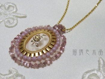 ヴィンテージカボションをはめ込み、周囲はチェコラウンドで囲ってみました。