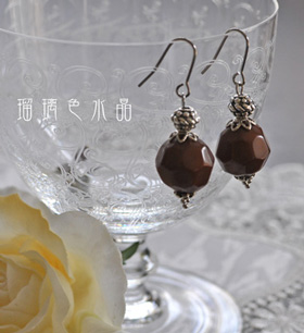 ココア色の樹脂ビーズとメタルパーツ、2種のビーズキャップを使用して・・・