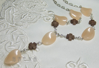 ネックレスは薄いオレンジ系なのに対して、こちらは僅かにピンクがかった