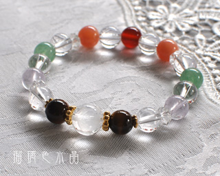 こちらは大粒の水晶に麒麟が彫り込まれたラウンドと、5種類の天然石を