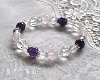 クリアな水晶の間にアメジストとローズクォーツを入れてみました。
