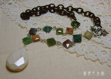 チェーン部分はインディアンアゲートのカット入り斜めスクウェアを繋いで