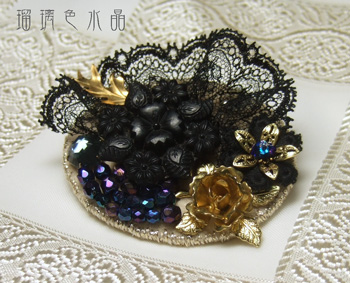 フレンチジェットの刺繍ブローチです。以前こちらでご紹介した素材ですが