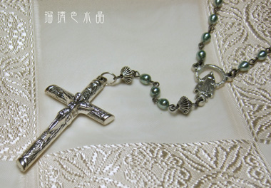 前回、1点物でお出ししたハスケルパールのロザリオですが、クロスを差し替えて